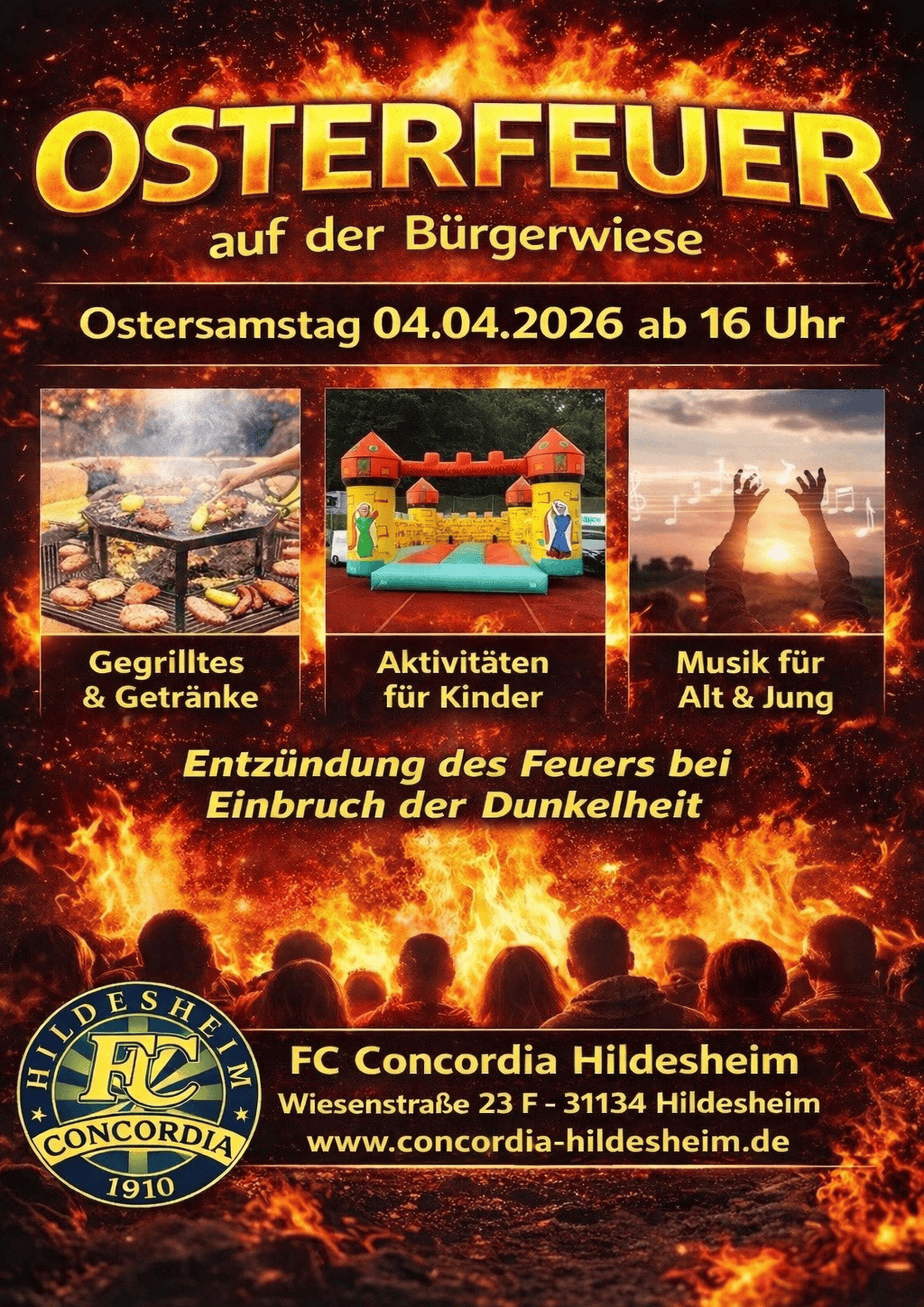 Seit Jahrzehnten findet am Ostersamstag das riesige Osterfeuer auf der Bürgerwiese statt Am Ostersamstag den 04.04.2026 ab 16:00 Uhr ist es endlich wieder soweit